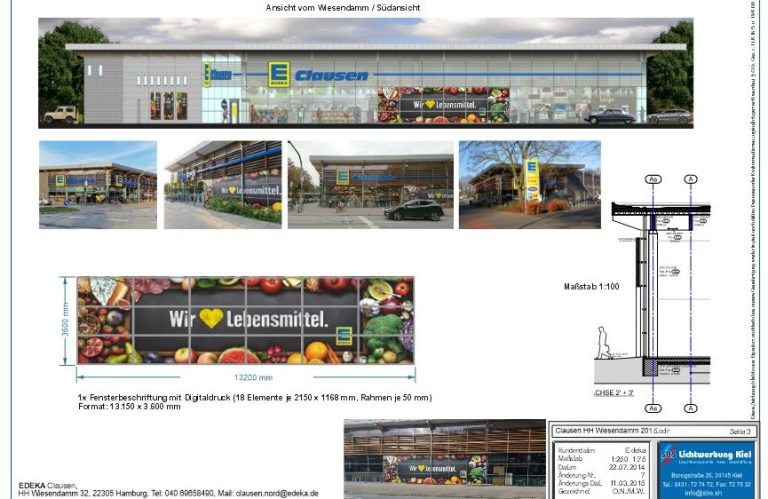 Entwurfsarbeit inklusive Simulationen von Lichtwerbung. CI Umsetzung, Planung von Informations- und Leitsystemen. Kostenkalkulation, Erstellung von Angeboten bis hin zur Begleitung des Projekts.